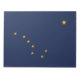 This design features the flag of Alaska, which is a state in the northwestern extremity of the United States West Coast, just across the Bering Strait from Asia. An exclave of the United States, it borders the Canadian province of British Columbia and territory of Yukon to the east and southeast and has a maritime border with Russia's Chukotka Autonomous Okrug to the west. To the north are the Chukchi and Beaufort seas of the Arctic Ocean, and the Pacific Ocean lies to the south and southwest. The largest city in Alaska in Anchorage, while the state capital in Juneau. The nickname of Alaska is "The Last Frontier". The state flag of Alaska includes eight gold stars, forming the Big Dipper and Polaris, on a dark blue field.