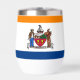 Thermal Wine Tumbler with the flag of Albany, New York. An orange, white, and blue flag with the city emblem in the centre