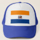 Hat with the flag of Albany, New York. An orange, white, and blue flag with the city emblem in the centre