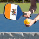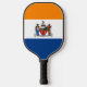 Pickleball Paddle with the flag of Albany, New York. An orange, white, and blue flag with the city emblem in the centre