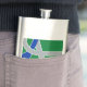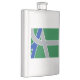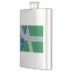 Flask with a design with the flag of Albany, Oregon. A green, grey, and blue flag