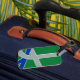 Luggage Tag with a design with the flag of Albany, Oregon. A green, grey, and blue flag