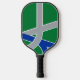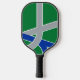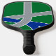 Pickleball Paddle with a design with the flag of Albany, Oregon. A green, grey, and blue flag