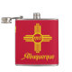 Vinyl wrapped flask with city of Albuquerque, New Mexico; red flag with yellow bird and symbol of New Mexico