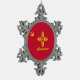 Snowflak Ornament with city of Albuquerque, New Mexico; red flag with yellow bird and symbol of New Mexico