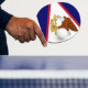 The flag of American Samoa is a flag consisting of a red-edged white triangle pointing towards the hoist charged with a bald eagle clutching a war club and fly-whisk, with dark blue upper and lower triangles. Adopted in April 1960 to replace the "Stars and Stripes" as the official flag of the territory, it has been the flag of the Territory of American Samoa since that year. The colours used epitomize the traditional colours of the United States and Samoa.