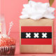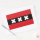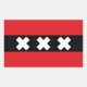 Sticker with design with design with flag of Amsterdam, capital city of Netherlands, red and black flag with three white Saint Andrew’s crosses in the centre