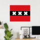 This design features the flag of the Dutch capital city of Amsterdam. The flag depicts three Saint Andrew's Crosses and is based on the escutcheon in the coat of arms of Amsterdam. Design journalist Roman Mars declared it, in 2015, to be the most "badass" city flag in the world. AFC Ajax, an Amsterdam-based football team that plays in the Dutch Eredivisie, uses the Amsterdam flag as their captain's armband. Amsterdam is colloquially referred to as the "Venice of the North", because of the large number of its canals which form a UNESCO World Heritage Site.