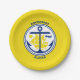 Paper plate with city of Anchorage, Alaska; yellow flag with white seal with an illustration of a blue ship and anchor