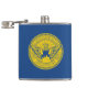 Vinyl wrapped flask with flag of city of Atlanta, Georgia; blue flag with yellow seal with an illustration of phoenix rising from flames