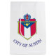 Gift Bag with the flag of Austin, Texas. A white flag with city’s coat of arms in the centre