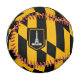 Baseball with flag of city of Baltimore, Maryland; black and yellow flag with an illustration of Battle Monument