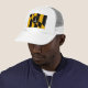 Trucker Hat with flag of city of Baltimore, Maryland; black and yellow flag with an illustration of Battle Monument