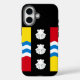 iPhone 14 Case with design with a flag of historic county of Bedfordshire, in England, Great Britain; red and gold flag with black vertical band with tree white scallops in the centre