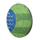 Dartboard with a design with the flag of Bellingham, Washington. A green and blue flag