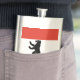 Flask with flag of Berlin, state flag with horizontal stripes of red and white, with an illustration of a black bear in the centre