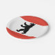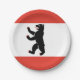 Paper Plate with flag of Berlin, state flag with horizontal stripes of red and white, with an illustration of a black bear in the centre