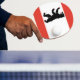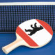Ping pong paddle with flag of Berlin, state flag with horizontal stripes of red and white, with an illustration of a black bear in the centre