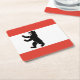 Paper coaster with flag of Berlin, state flag with horizontal stripes of red and white, with an illustration of a black bear in the centre