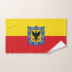 Hand Towel with design with flag of Bogota, capital city of Colombia, red and yellow flag with coat of arms with eagle in the centre