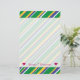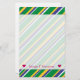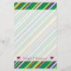This stationery design features a pattern of stripes (or lines) of various widths, coloured green, yellow, blue or white. These colours were inspired by those of the national flag of Brazil. It also features a custom name near the bottom, between heart shapes. [~Z0000011]