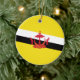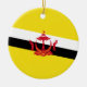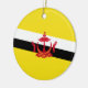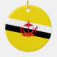 This design features the national flag of Brunei (officially known as the Nation of Brunei, the Abode of Peace), which is a country located on the north coast of the island of Borneo in Southeast Asia. Apart from its coastline with the South China Sea, Brunei is completely surrounded by the Malaysian state of Sarawak; the country is separated into two parts by the Sarawak district of Limbang. Brunei is the only sovereign state completely on the island of Borneo; the remainder of the island's territory is divided between the nations of Malaysia and Indonesia. The capital of Brunei is Bandar Seri Begawan, which is also the country's largest city. Other major cities and towns in Brunei include Kuala Belait, Seria, Tutong and Bangar.