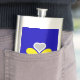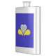 Flask with design with design with flag of Brussels-Capital Region of Belgium, blue flag with yellow, grey and white iris