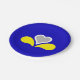Paper plate with design with flag of Brussels-Capital Region of Belgium, blue flag with yellow, grey and white iris