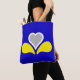 Tote bag with design with flag of Brussels-Capital Region of Belgium, blue flag with yellow, grey and white iris
