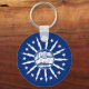 Button Keychain with flag of city of Buffalo, New York; blue flag with white seal of the city and 13 lightning bolts