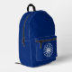 Backpack with flag of city of Buffalo, New York; blue flag with white seal of the city and 13 lightning bolts