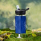 Water Bottle with flag of city of Buffalo, New York; blue flag with white seal of the city and 13 lightning bolts