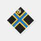 Paper napkin with design with a flag of historic county of Caithness, in Scotland, Great Britain; black flag with blue and yellow Nordic cross and an illustration of a ship with a raven on its sail in the upper hoist