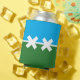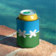 Can Cooler with a flag of Cedar Park, Texas. A green and blue flag