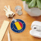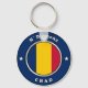 The national flag of Chad infused into a circle shape with the country name and capital city embedded on the outer circle.