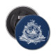 Button bottle opener with flag of Charleston, South Carolina; blue flag with seal of the city