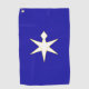 Golf Towel with a design with the flag of Chiba Prefecture in Japan (千葉県, Chiba-ken), a blue flag with a white and yellow symbol