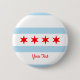 Customizable Round Button with flag of city of Chicago (largest city in Illinois), white and light blue striped flag with four red stars
