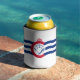Can cooler with flag of city of Cincinnati, Ohio; white flag with three blue waves with red “C” in the centre