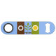 Bottle Opúener with flag of Fresno, California; flag with three vertical bands of brown, blue and green, with stylized illustrations of cog, plant and sun