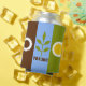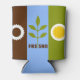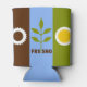 Can Cooler with flag of Fresno, California; flag with three vertical bands of brown, blue and green, with stylized illustrations of cog, plant and sun