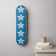 Skateboard with flag of Houston, Texas; blue flag with seal of Houston in a white star, with an illustration of a train