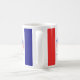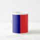 Mug with flag of city of Cleveland, Ohio; flag with three vertical bands of red, white and blue with seal of the city in the centre