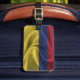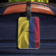 Luggage tag with the flag of Colombia in wavy fabric style design. This design features the Colombian flag colours and design with a beautiful waving material textured effect. This flag design is a great way to show you are proud to be from Colombia.