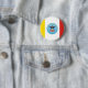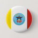 Round Button with flag of city of Columbus, Ohio; flag with three vertical bands of yellow, white and red with blue seal of the city with bald eagle in the centre