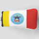 Golf putter cover with flag of city of Columbus, Ohio; flag with three vertical bands of yellow, white and red with blue seal of the city with bald eagle in the center