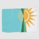 Golf Towel with a design with the flag of Coral Springs, Florida. A white, green, and blue flag with a yellow rising sun