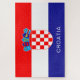 This puzzle features the flag of Croatia with the Croatian coat of arms and a customizable text "CROATIA" in white font on the blue stripe.