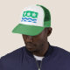 Hat with design with a flag of historic county of Cumberland, in England, Great Britain; green flag with three Parnassus flowers and white and blue waves