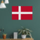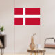 Flag of Denmark: "Guds hjæ lp, Folkets kæ rlighed, Danmarks styrke" → "The help of God, the love of the people, the strength of Denmark". It is composed of a white Scandinavian cross on a beautiful red background.
